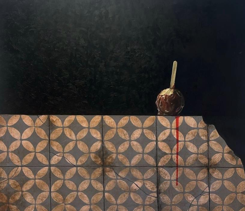 • Maçã óleo sobre madeira