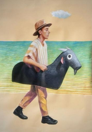 Giz pastel oleoso sobre papel